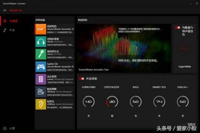 既然是出自创新的产品,丰富的软件功能自然也成为iRoar Go重要优势。软件部分提供有手机APP(iOS/安卓)和PC配套软件,相比之下,手机APP功能基本涵盖了我们熟知的EQ控制器、音效模式调整等常用功能。而真正想要iRoar Go的强大,还是需要搭配PC使用才行。不仅可以通过专用驱动管理软件对iRoar Go进行固件升级,另外在软件面板上还可以选择更为丰富的音效预设体验,比如发烧友、视频、轻音乐、游戏、现场音乐会等等,根据不同使用需求选择不同音效,如果还不满意可以在对应效果器中再进行更细致的调节,可调整选项夸张点说有点丰富到令人发指。