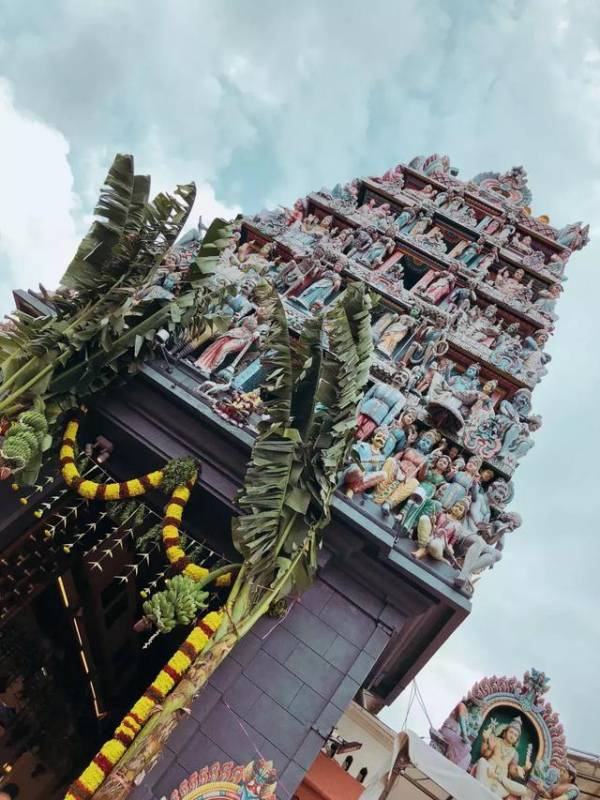 新加坡的包容性和国际文化性,随便一街一角都清晰可见,你看这里有着如此恢弘的印度庙宇,就在街角处,拜谒的教徒随处可见。