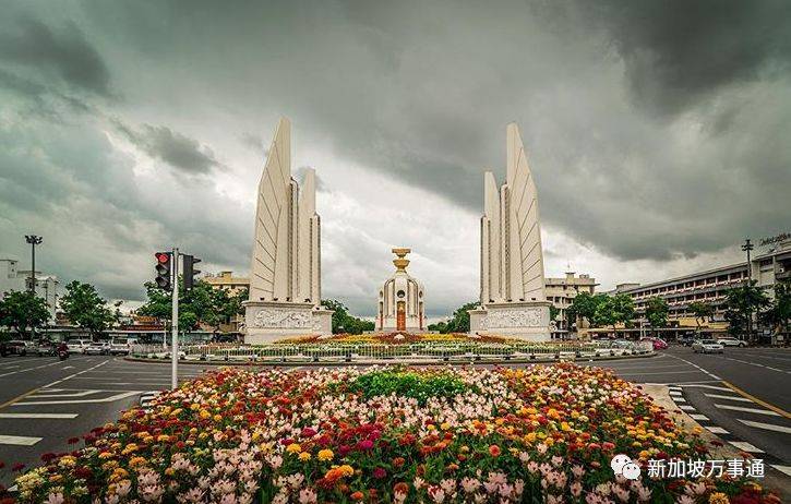 民主纪念碑(Democracy Monument)位于曼谷Ratcha Damnoen Klsing 街道中央,是为纪念建立了君主立宪制的民主制度。