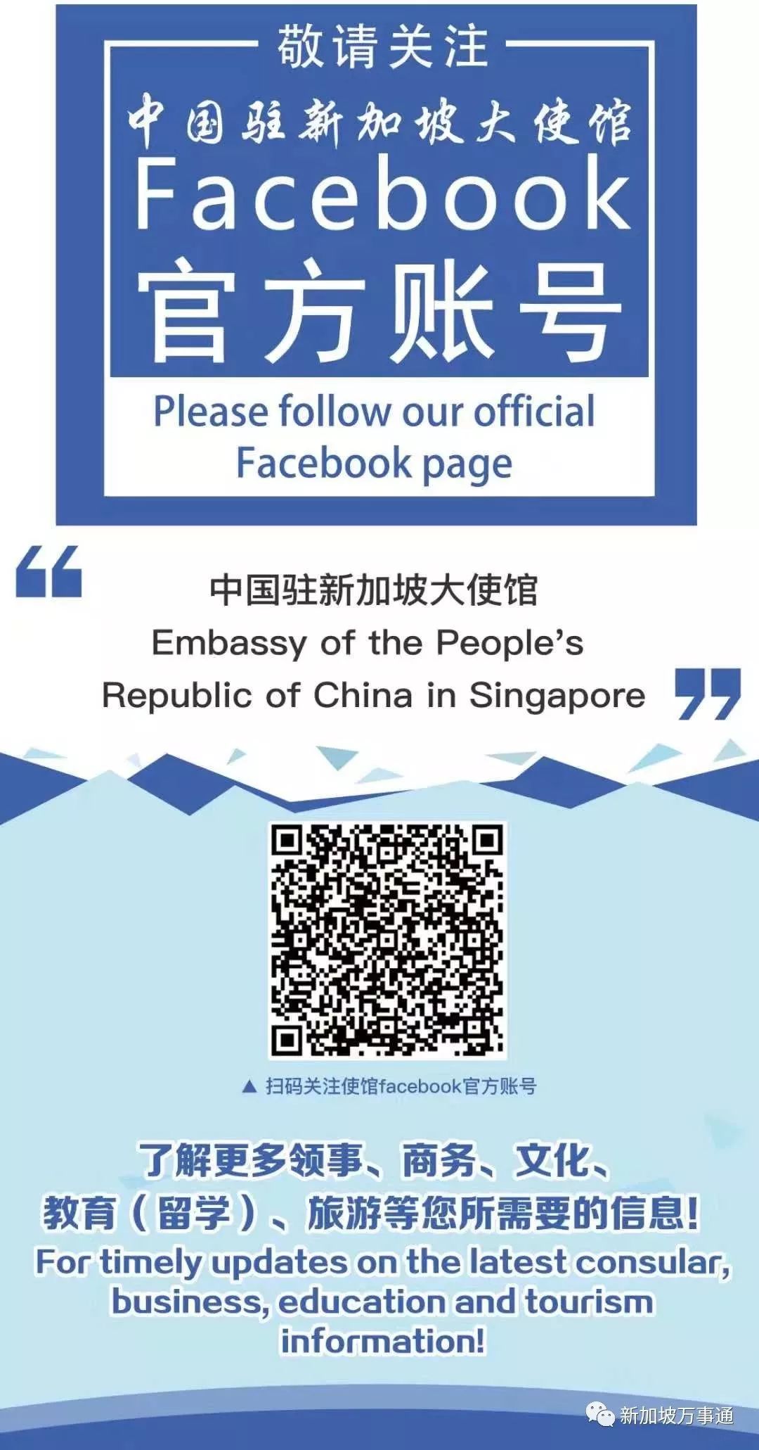 在今年,为进一步加强中国驻新加坡大使馆与新加坡各界和在新中国公民的沟通,特地开设了Facebook官方账号(账号名称:“中国驻新加坡大使馆 Embassy of the People's Republic of China in Singapore”)