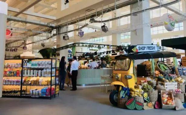 这个实体店占地60,000平方英尺(约五千多平方米),集超市、生鲜杂货店、线上订单处理中心、体验式餐饮为一体。