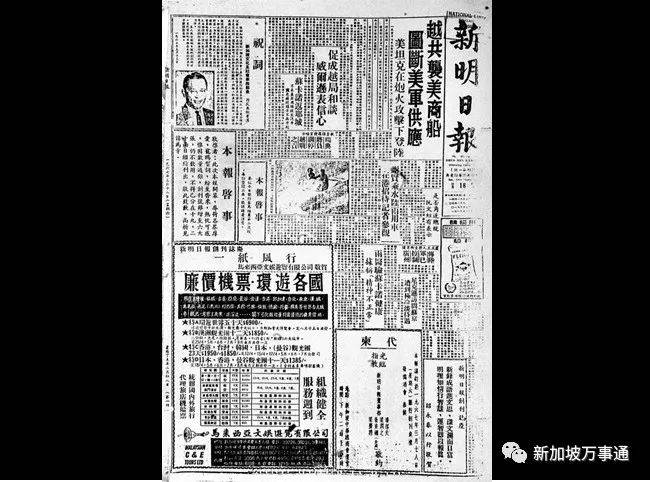 创刊号的《新明日报》,一共有6大张,封面版的头条标题是“越共袭美商船,图断美军供应”;左边一个小栏块为当时的文化及社会事务部长鄂图曼的祝词。封面版上还有一则影星“谢贤乘水陆两用车”的娱乐新闻,这是《新明》的“特色”,金庸要搞的 ,便是这样一份有特色的报纸。