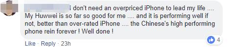 (翻译:我不需要一个过于昂贵的iPhone!我的华为目前用得很爽,功能性能都不错,至少比iPhone强!