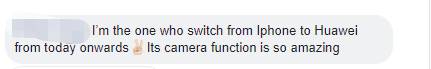(翻译:老娘今天从苹果换到华为了,拍照功能太666~)