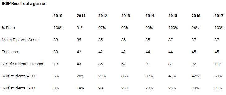 2017年华中国际学校有三名学生取得45分的满分成绩,考生及格率达到100%,40分以上学生占30%,平均分高达37.2分(全球平均水平29.8分)。