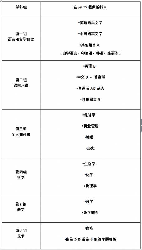 这5-6年级是IB最关键的两年,学校为学生提供标准水平(SL)和高级水平(HL)的六个科目组,学生至少选择三个在HL学习。