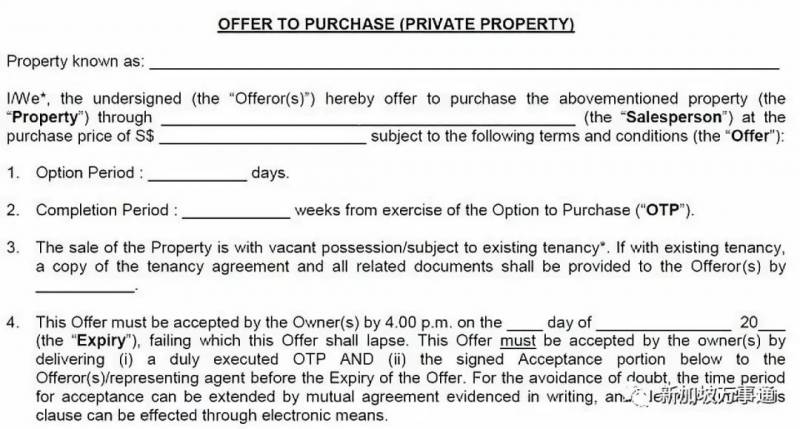 二手公寓的OTP合同没有统一的格式,通常买方中介会提供市场接受的标准模式OTP。 好像下图这样的。
