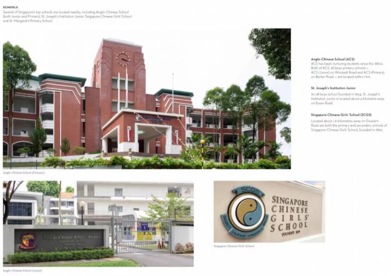 1公里范围内有三所名校:Anglo Chinese Primary School、Anglo Chinese Junior School和Saint Joseph’s Institution Junior;