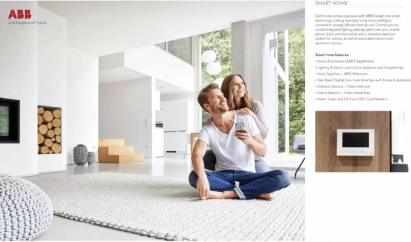 10号伊芙琳的每个家庭都配备了ABB [email protected]智能家居技术,使日常生活更智能,方便,节能和安全。使用手机轻松控制空调和照明设置。每个单元还为访客提供无缝对讲系统,以及自动停车场等。ABB-Free @Home智能家居系统功能包括家庭自动化、照明和空调控制(一间卧室和起居/用餐)、智能开关(ABB Millennium)、Yale智能数字门锁(家庭自动化接口)、室外可视对讲系统、室内视频免提系统、访客门和升降车ID/IC卡读卡器等。