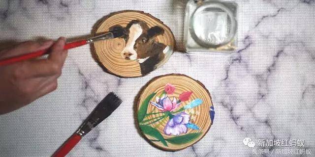把喜爱的图样画在木片上,不仅能当摆设品,还能当杯垫。