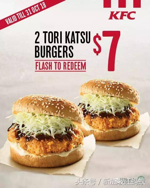 KFC推出全新日式汉堡。只需显示以下图片就能以7元购买2个汉堡。