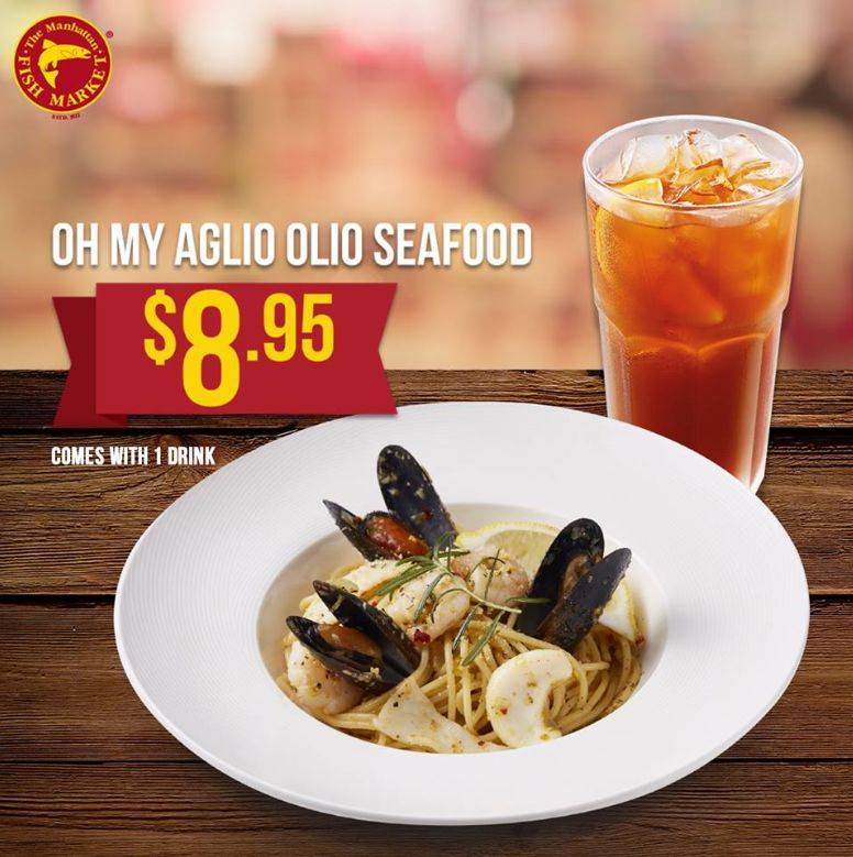 海鲜意大利面(Oh My Aglio Olio Seafood)+饮料,只要$8.95!