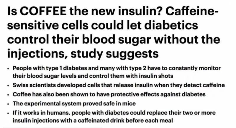 但可以造福于无数糖尿病患者的好消息是:胰岛素的功效在未来可能被咖啡所替代!