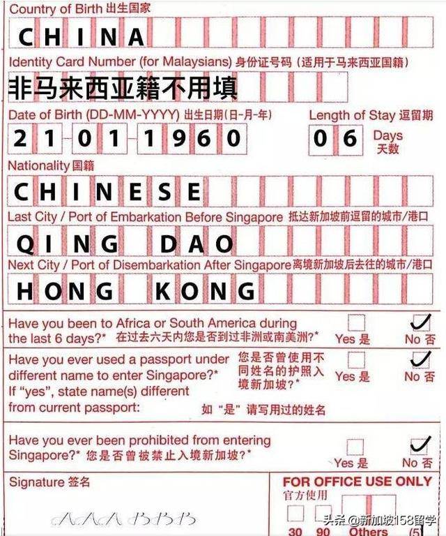 它是新加坡移民局用来记录、审核出入境人员的重要文件,也是旅客出入新加坡的凭证。