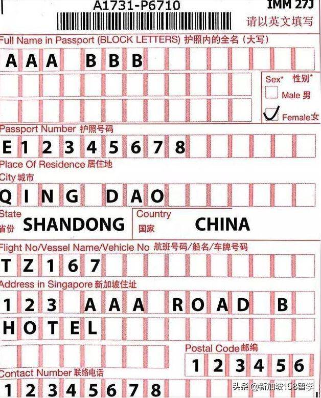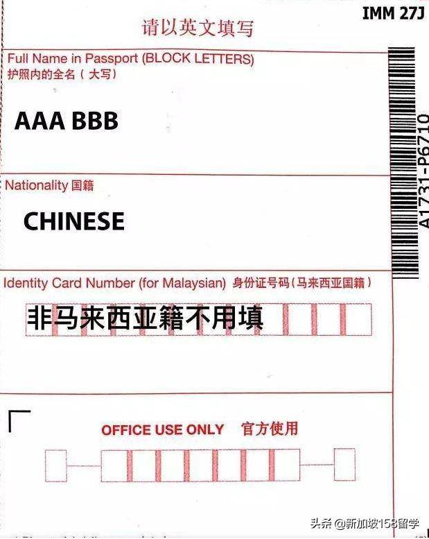 当同学们在飞往新加坡的时候,在飞机上空姐一定会给大家发一个叫做白卡的东西,也就是入境卡。