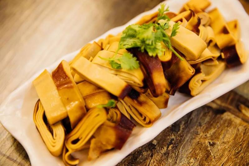 用鸡汤炖的干豆腐皮而后炭火熏干