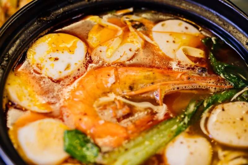 大虾、各类鱼丸、小油菜配着Q弹爽滑的米线