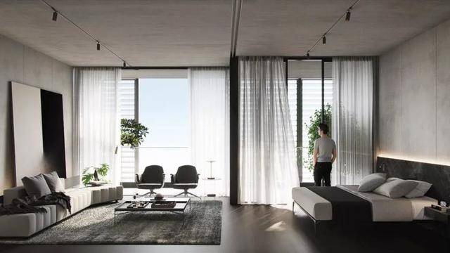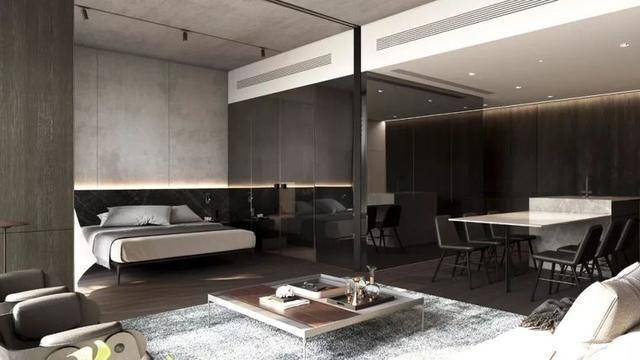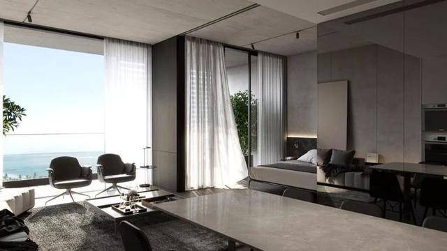 受著名建筑师Kerry Hill朴素的工业唯美主义的启发,这栋1130平方英尺的工作室公寓融合了原始混凝土和自然音色的美,并将其与抛光玻璃、精致固定装置和当代家具的背景并列在一起。