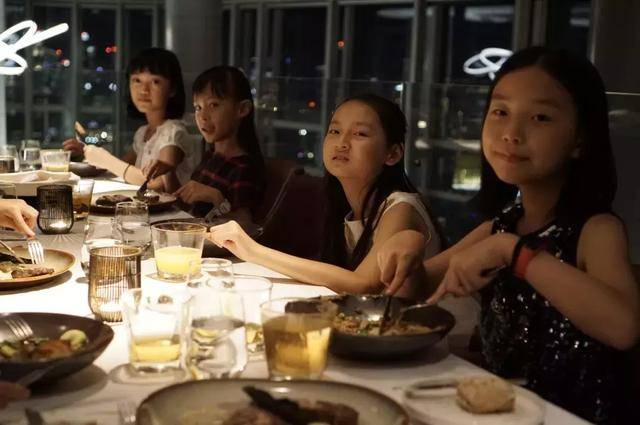 当天晚上,孩子们需要著西服和礼裙,到新加坡一家米其林餐厅就餐。这家餐厅位于新加坡最繁华的乌节路的52层,可以俯瞰整个新加坡的夜景。