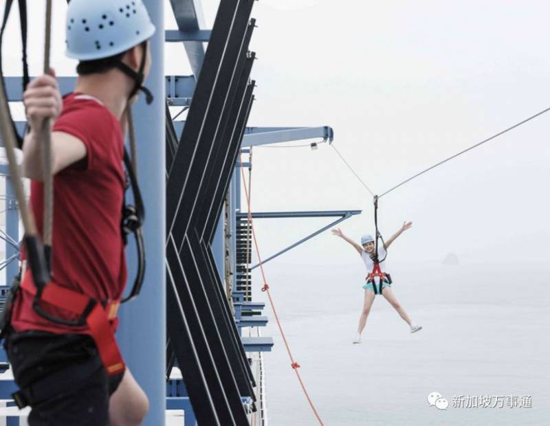 室外的凌空走绳索,高出甲板19层,加上海面滑索道,或者去攀岩墙。(吹呀吹呀我的骄傲放纵!)