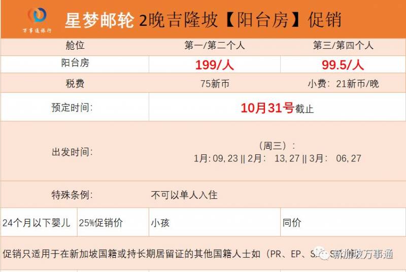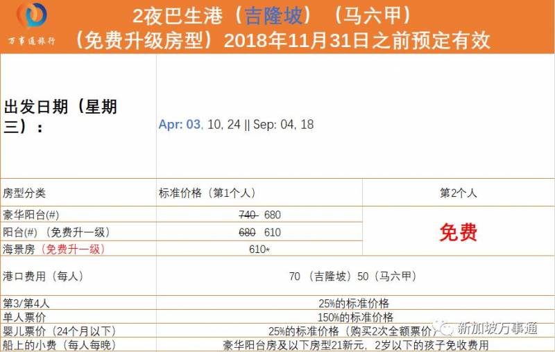 送【巴淡岛免费1日游】,不含$35新/人码头税。