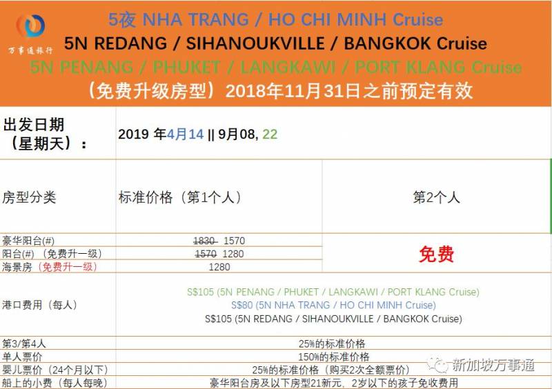 更多详细行程报价,请扫描二维码添加“万事通旅行小助手”(微信号:sgtong004),开启您的邮轮之旅~