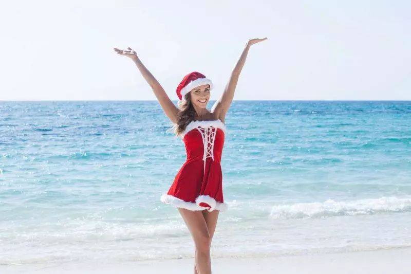 穿着短袖短裙的圣诞老人