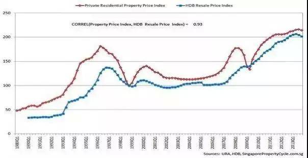 长期来看,如果购房者长期持有组屋,其保值的功能基本可以实现。在图上你也可以看到,蓝色的组屋价格波动变化比较小,因为组屋是政府控制,随时可以对市场调控,并运用多种手段对供需进行调剂。相比之下,红线代表的私宅价格波动要大得多,主要因为政府有意让市场决定其价格。你可以看到在1997年和2008年私宅价格都有比较大幅度的下跌。