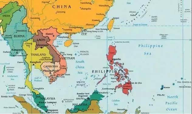 注:上图中新加坡位于地图的最下端,由于面积狭小只是一个小点点。