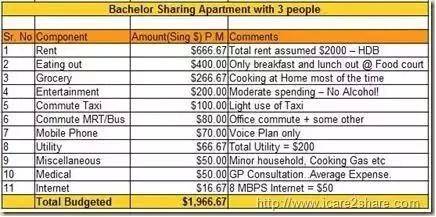 有人曾经粗粗算过,在新加坡一个单身汉每个月大约需要支出2000新币左右(约合人民币1万元)。我看了一下,如果你真的要缩衣节食,可能1000新币也活的下来(比如外出吃饭,娱乐等可以砍掉)。如果稍微要活的舒服些,1500新币应该足够。