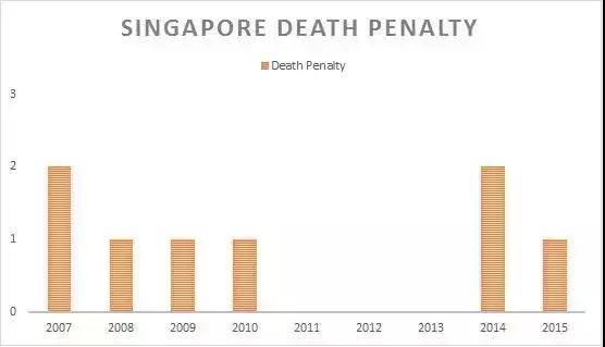 可能由于新加坡人口比较少,因此每年的死刑数量也特别少。在上图中你可以看到,每年处死的数量介于0-2之间。