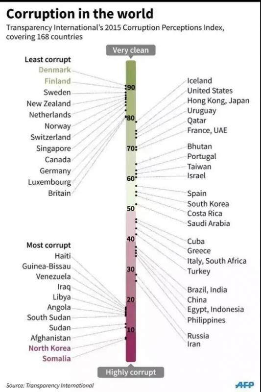 在新加坡呆过的朋友看到这个结论应该不会感到惊奇。小岛国给人的感觉就是秩序井然,腐败程度很低(但是不是零腐败),如果在公共场合作奸犯科(比如摸女生屁股,向人吐痰,谩骂打架等),会受到严厉的惩罚。