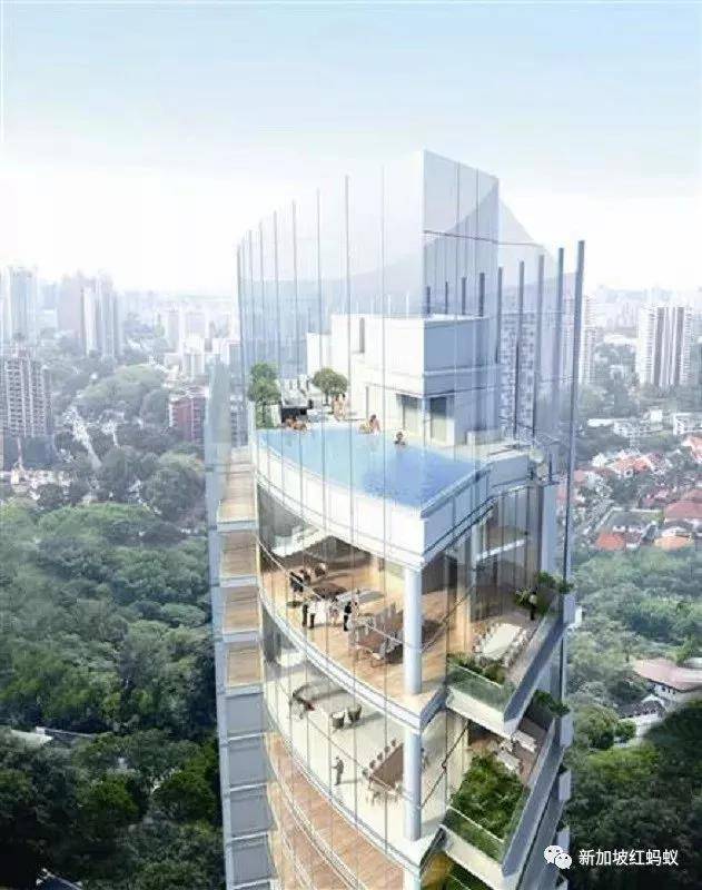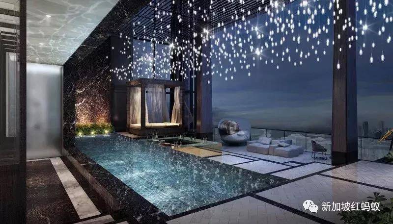 而顶层豪宅坐落在最高楼,共有三层楼,顶楼是一个25米长的露天游泳池。让屋主在泳池内戏水的同时,还能欣赏窗外的美景。
