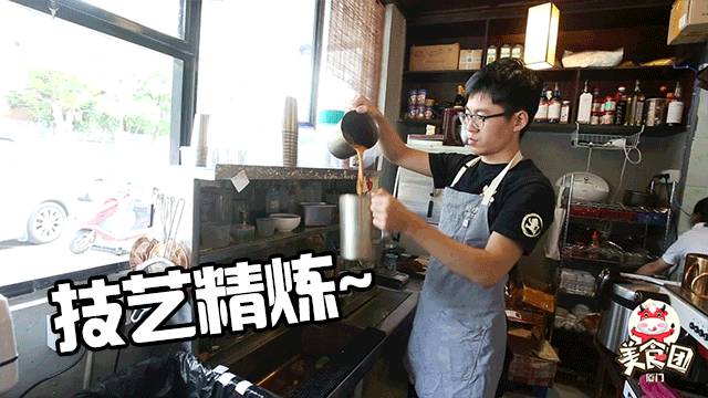 老板亲自上手为我们展示了他精湛的拉茶技艺,据说这样“拉”过之后的茶,口感会更加顺滑香醇呢~