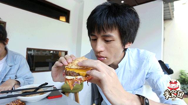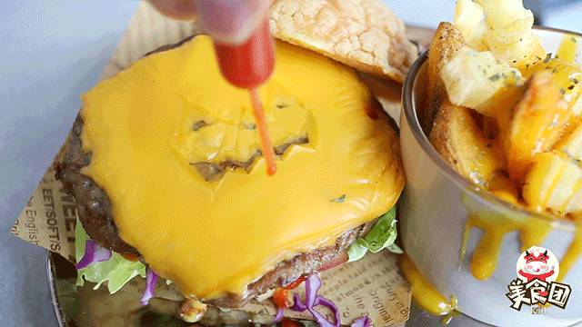 在这里能吃到美味的汉堡令摄像哥哥感到十分惊喜,于是他十分有童心地拿起针管番茄酱挤了个笑脸以表达自己的心情。