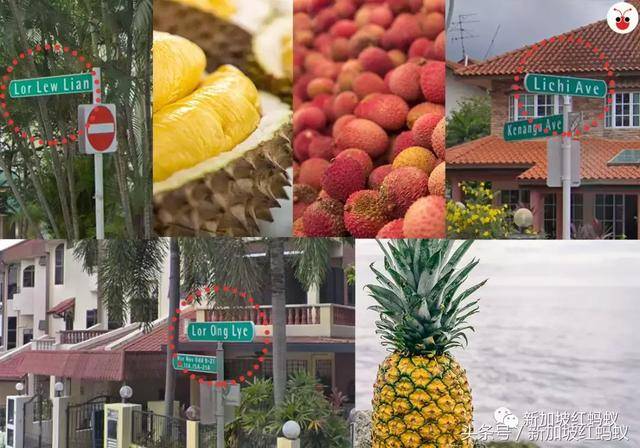 Lorong Lew Lian(罗弄榴梿)位于实龙岗一代,而Lorong Ong Lye(罗弄黄梨)就在它的后面。Lichi Avenue(荔枝道)则是在麦波申一带。虽然不知道叫这些名字的具体原因,但相信是因为新加坡榴梿荔枝黄梨一类的热带水果非常多,才在早期如此命名。不知道住这一代的居民常会吃到这些水果吗?