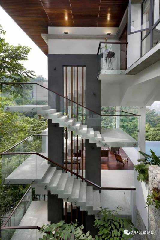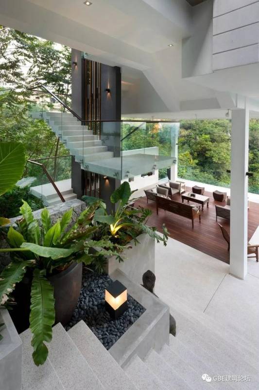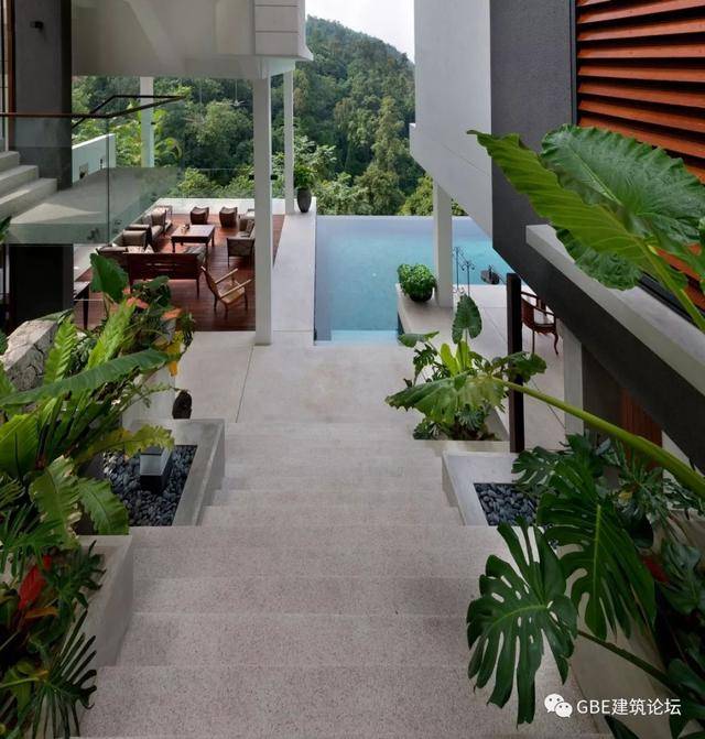 宽敞蜿蜒的楼梯从34度的山坡一直延伸到房屋。