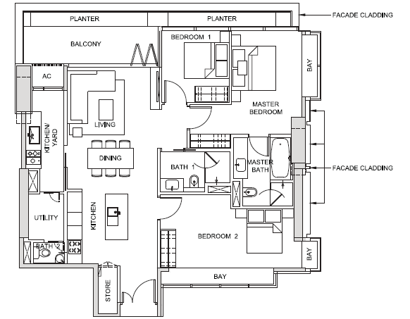 风华南岸府提供190套豪华公寓,其中包括88套两卧室套房,61套三卧室套房,35套四卧室套房和6套顶楼复式单位套房。