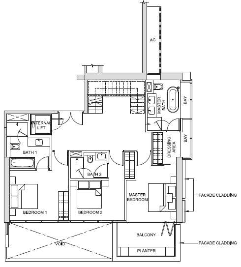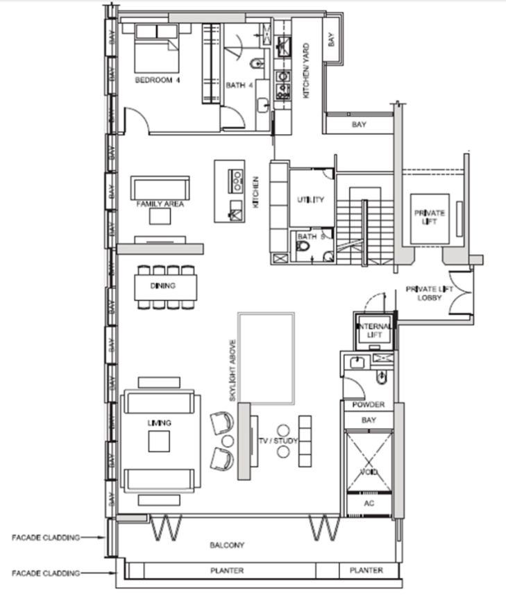 四卧室户型,套内面积208平方米起(2239平方尺)
