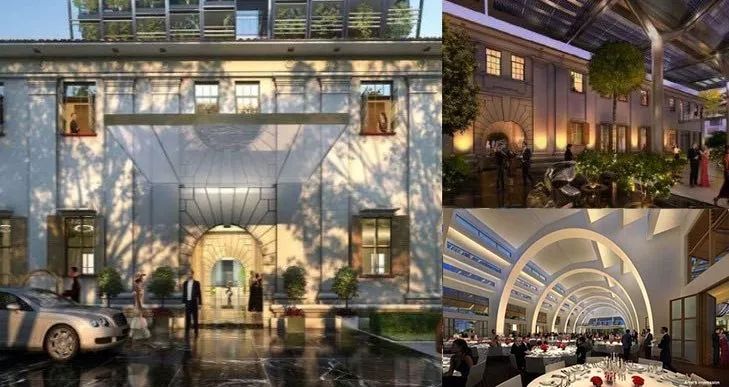 两栋银色超高层,搭配白金皇冠顶鹤立鸡群,融合巴黎官邸典雅华丽的法式风格和纽约曼哈顿区超高层建筑挺拔简洁的Art Deco外立面风格,形成前所未有的宏大气势。