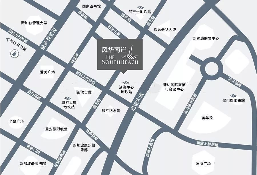 风华南岸府地处新加坡市中心位置,交通极为便利,公寓本身连接滨海中心地铁站(Esplanade MRT)和政府大厦地铁转换站(City Hall MRT),住户可以在滨海中心地铁站乘搭到地铁环线(MRT Circle Line)。