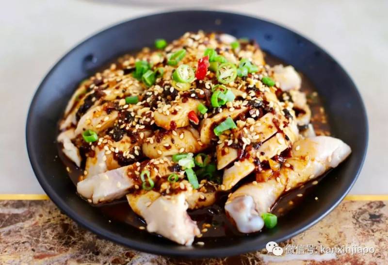 四川传统特色菜肴口水鸡(原价$6.8/份),鲜香嫩爽的鸡肉浇上辣汁,想吃多少吃多少。