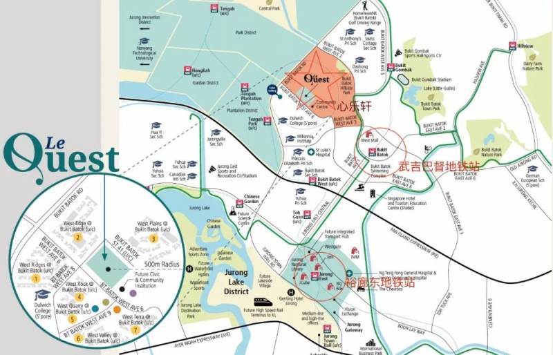 要成为CBD的地方,地价和房价肯定会被写字楼和公共机构抬高。因此产生的溢出效应,让周围近郊成为最热门的居住区。武吉巴督离裕廊东只有一站地铁,搭巴士只需10来分钟。