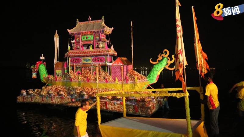 义顺汫水港斗母宫上千人参与 特备小舟点火位于义顺环路(Yishun Ring Road)忠邦联合宫的汫水港斗母宫,昨晚也举行了盛大仪式,恭送九皇爷圣驾回銮。
