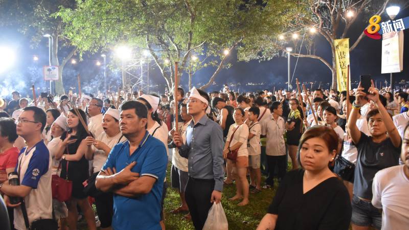 位于盛港西道(Sengkang West Avenue)的龙南殿,昨晚(17日)聚集近6000名信众,5万多平方米的场地人头攒动。