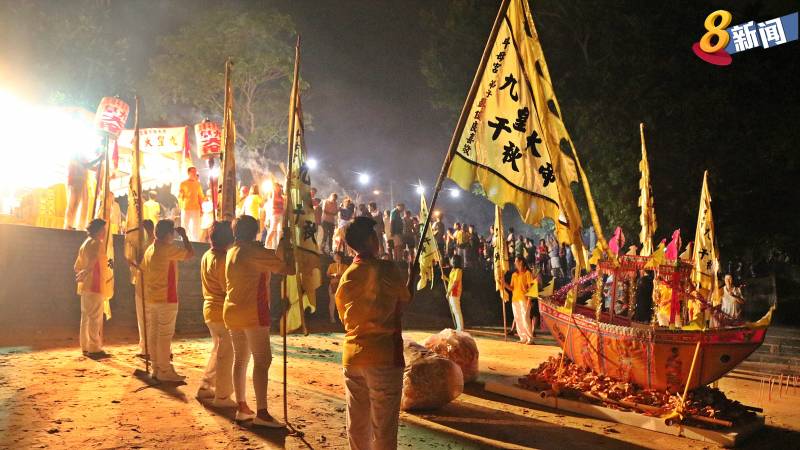 九皇爷圣诞最后一日,本地有逾万名信众恭送大帝回銮。全岛16座九皇庙宇中,龙南殿今年“最晚”送船出海,九艘皇船连成“一条龙”,为今年的九皇爷千秋宝诞画上圆满句点。