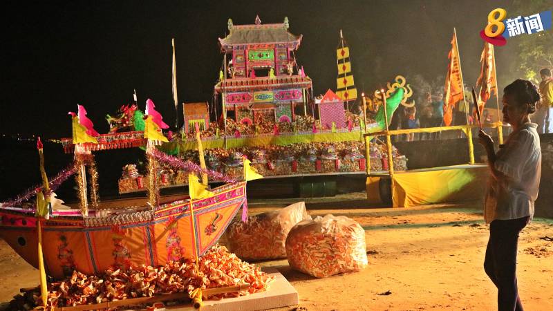 今年庙宇也特地准备了送炉小舟,让李美花登上小舟,点火恭送九皇大帝圣驾回銮。