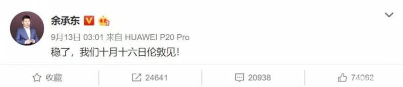 其实早在上个月,苹果开新品发布会的当晚,华为消费者业务CEO余承东在微博上发的那句“稳了,我们十月十六日伦敦见!”可以说吊足了大家胃口,外界纷纷猜测,华为这次到底憋什么大招,竟然如此自信?