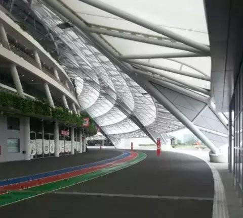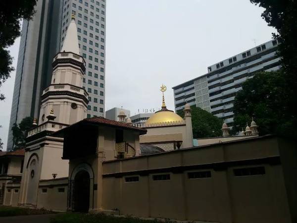 其实自己就是中国人,还去别国去游中国城,似乎有点不合常理,我完全是冲着马里安曼兴都庙和佛牙寺龙华院去的。想着不过是热闹的中国城,再怎么热闹也不过就是卖中餐的多,卖中国货的多,再不顶多就是看看当年中国人在这里打天下留下的点点痕迹。所以,我决定把昨天(8月25日)留下的遗憾补上,“哈查花蒂玛清真寺、马拉巴清真寺,马来王宫”,先查好地铁站,再把详细地址用英文写下来,然后就出发了。从巴耶利巴乘坐地铁,途中看到一个圆形巨大建筑物,不知是啥玩意儿,于是决定中途下车去打一下望,结果是新加坡体育俱乐部,瞅一眼,感觉跑道别出心裁,整个建筑大气而有现代感,还充分利用了空间。