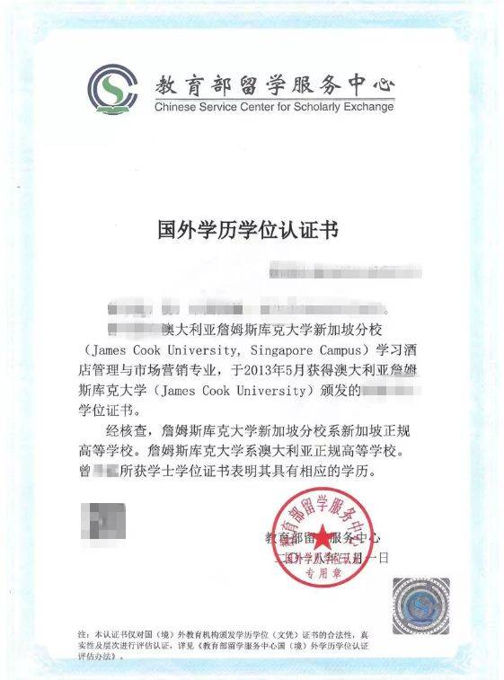 James Cook University, Singapore Campus(证书颁发时间为2010年7月之后)